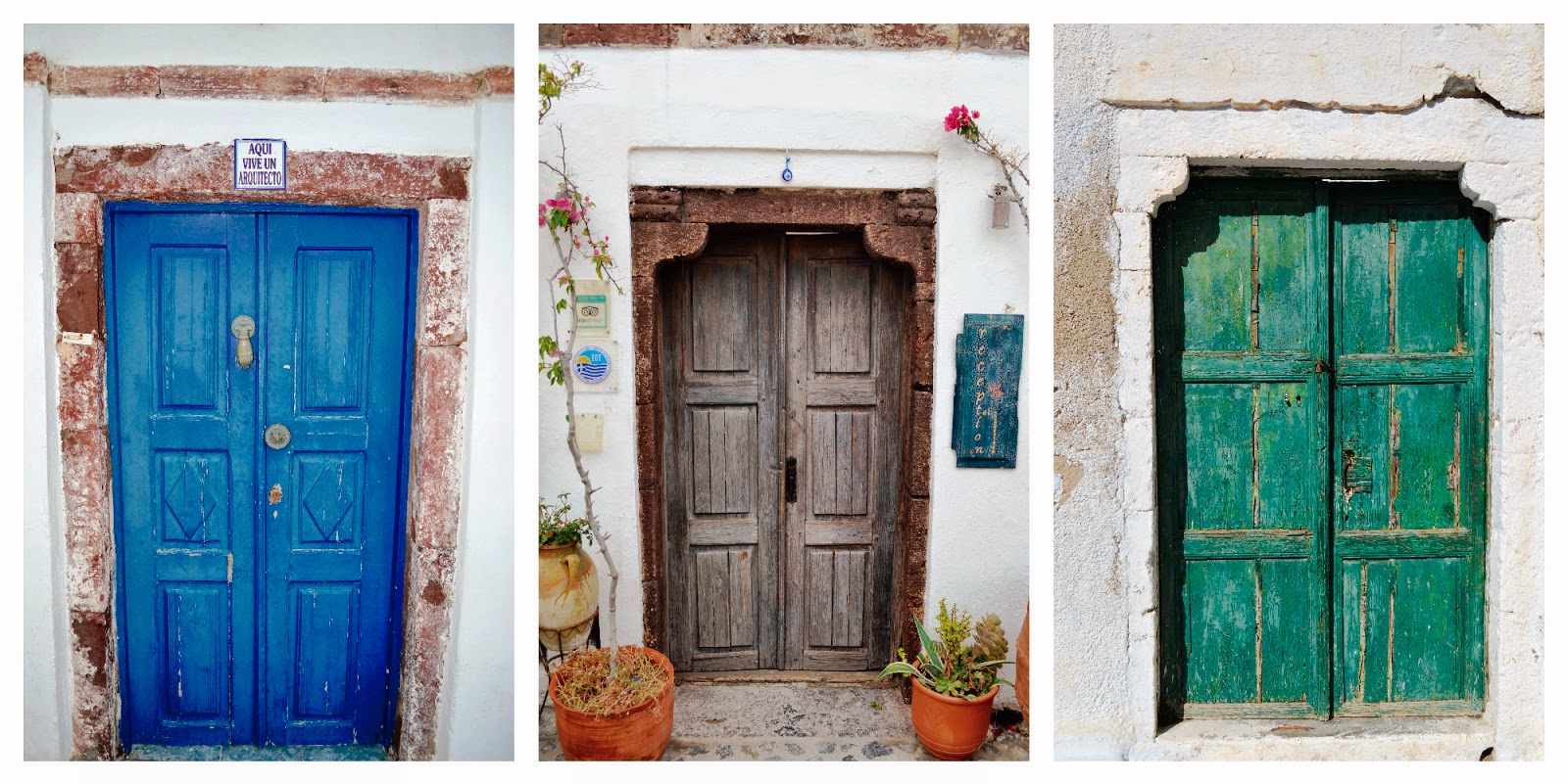 Las Puertas de Santorini. Las hay para todos los gustos: anchas, angostas, gruesas, finitas, caladas, raspadas, con plantas, dibujadas.